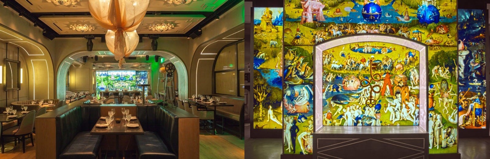 That same emotional engineering defined the space. Guests entered through triptych portals referencing The Garden of Earthly Delights; lenticular art shifted between Midwest nostalgia and European surrealism. The effect was playfully unsettling—“the right amount of wrong” once again made tangible.